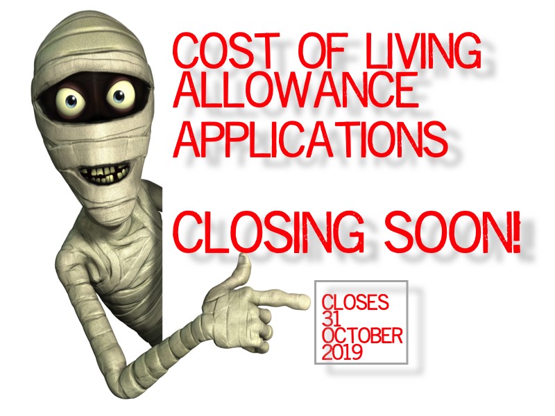 The 31st of October is your last day to apply for the Cost of Living Concession. The Cost of Living Concession is an annual payment provided by the Department of Human Services, paid directly to you via electronic funds transfer (EFT) to help with the ever increasing cost of living.