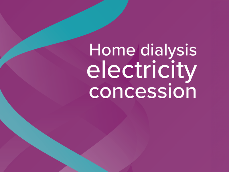 An electricity concession is available for eligible people with kidney disease who receive dialysis treatment at home.